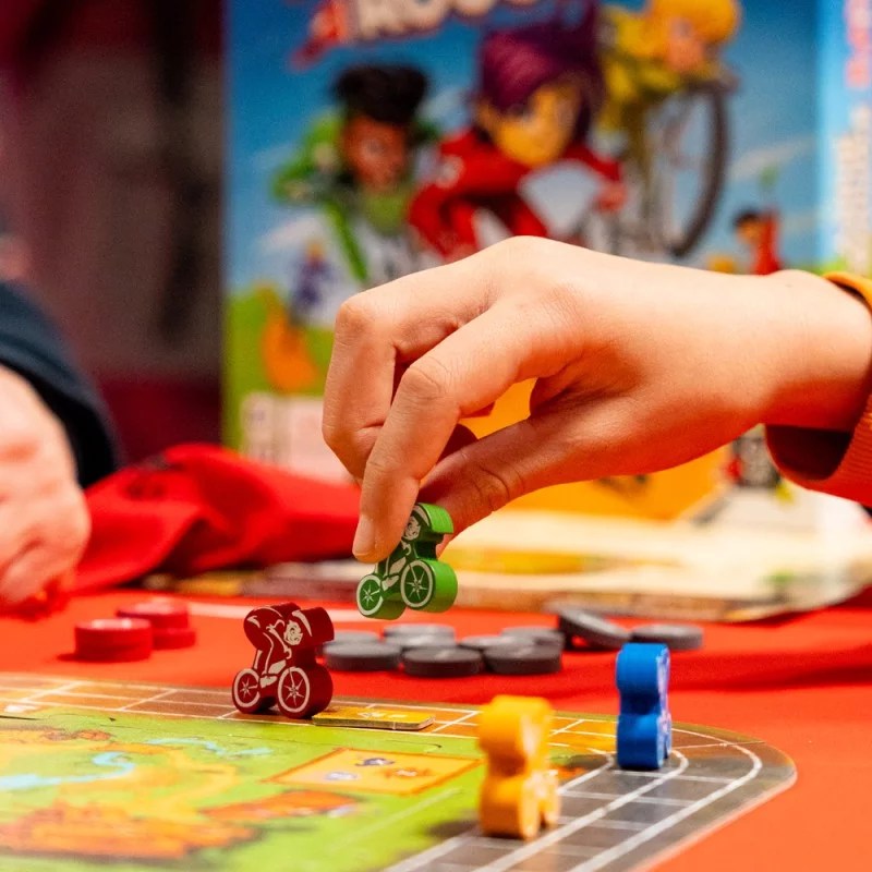 Dans le jeu Flamme Rouge : BMX, les joueurs font la course sur leur BMX pour être le premier à franchir la ligne d’arrivée, et c’est loin d’être une promenade du dimanche ! Il s’agit d’une course serrée dans laquelle tous les coups sont permis : saute par-dessus des rampes, dérape sur du gravier… Et surtout continue d’avancer à tout prix, même quand le tonnerre gronde !
